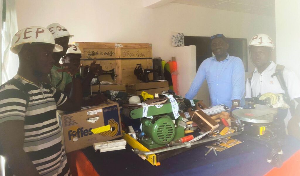 Toolbox en naaimachines aangekomen bij SEP Talenthub in Sierra Leone